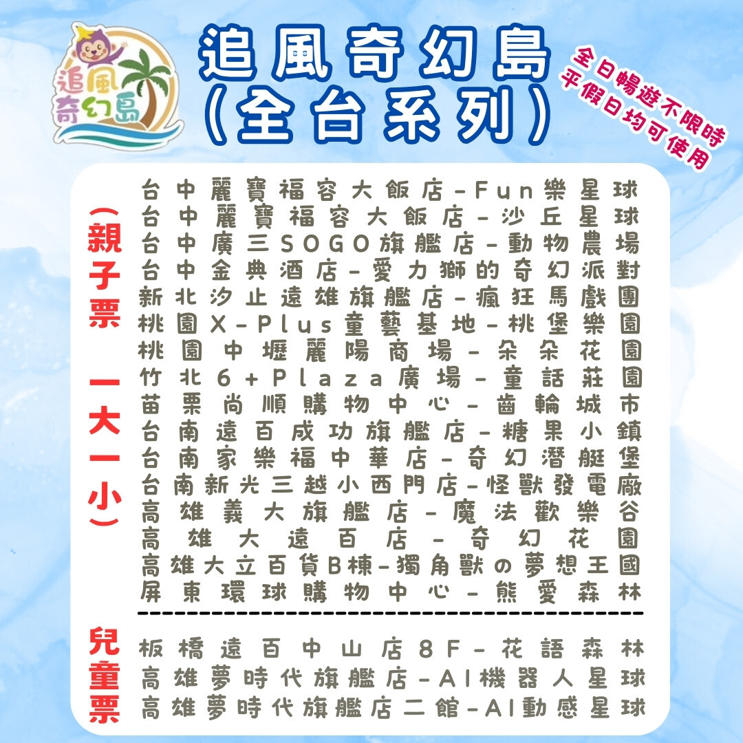 ●票券全天暢玩,不限平假日