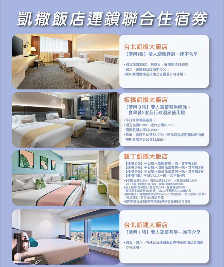 《凱撒飯店聯合住宿券》(票券效期:2026年9月30日,逾期折抵面額)