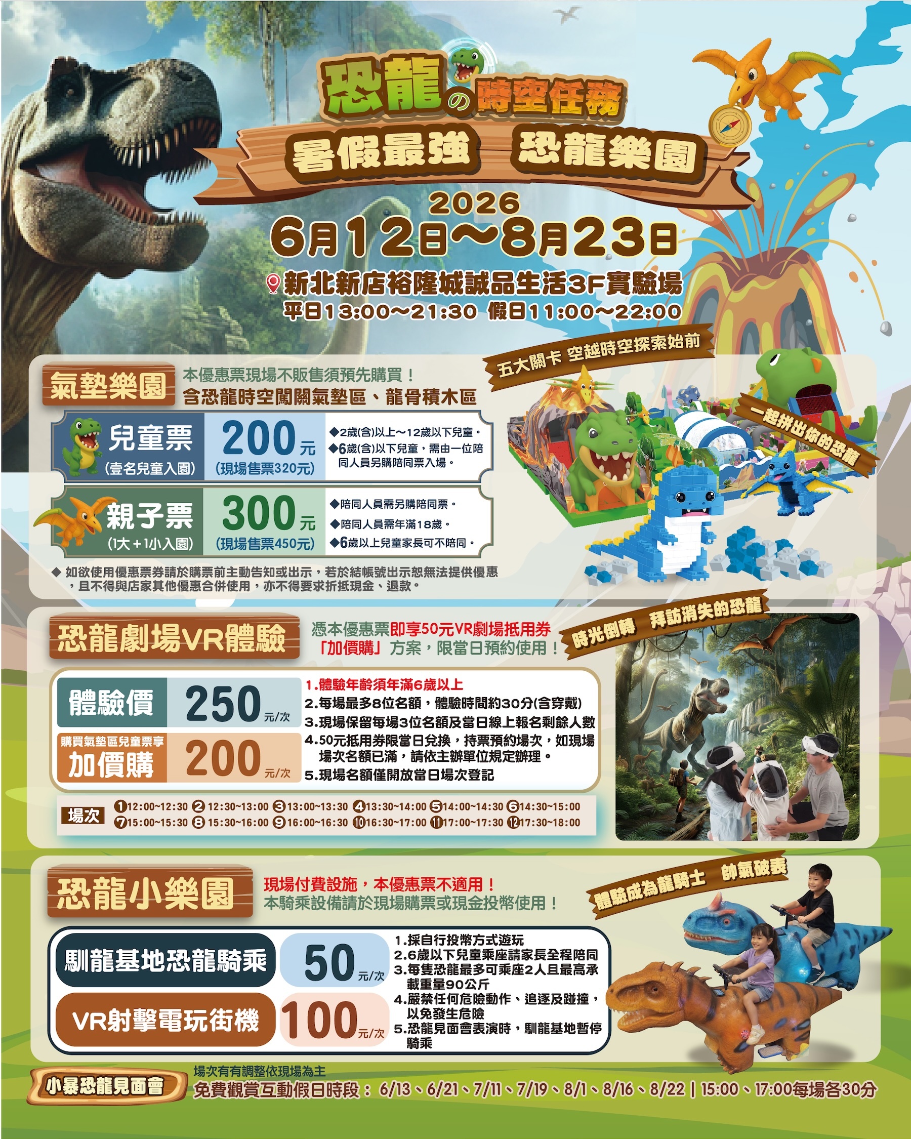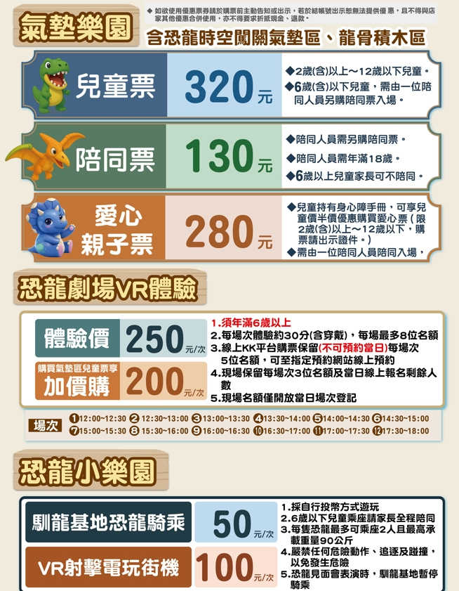 (不含馴龍基地|恐龍騎乘體驗與VR射擊電玩街機)