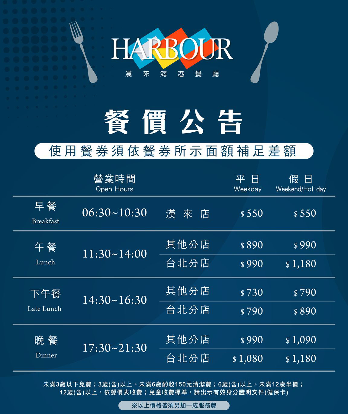 ●餐價須另加一成服務費