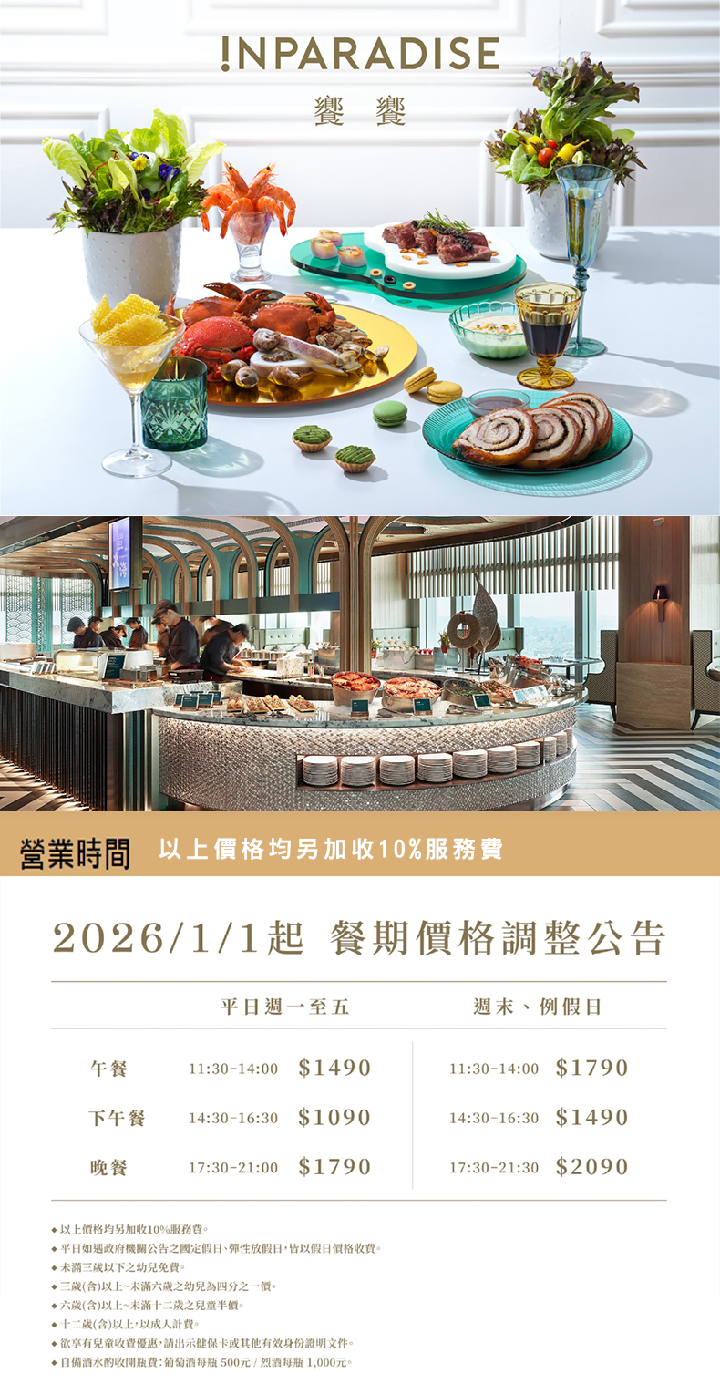 饗饗INPARADISE焠鍊各國料理精髓,詮釋特選食材新樣貌,以鮮緻玩味,感動心中最珍視的人。在每一個珍貴時刻,一起饗饗。
