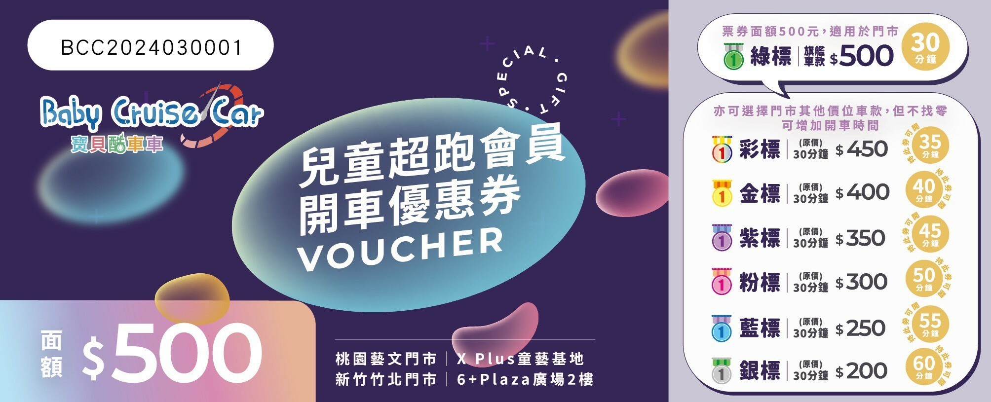➊可直接使用於門市 綠標【旗艦車款】$500 / 30分鐘