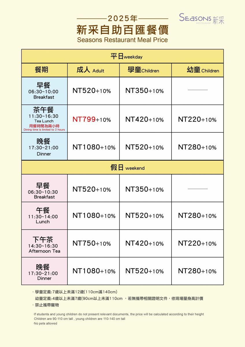 異國創意料理,自助形式:提供中西式早餐、午餐、下午茶及晚餐,多樣西式創意料理新鮮品嚐;