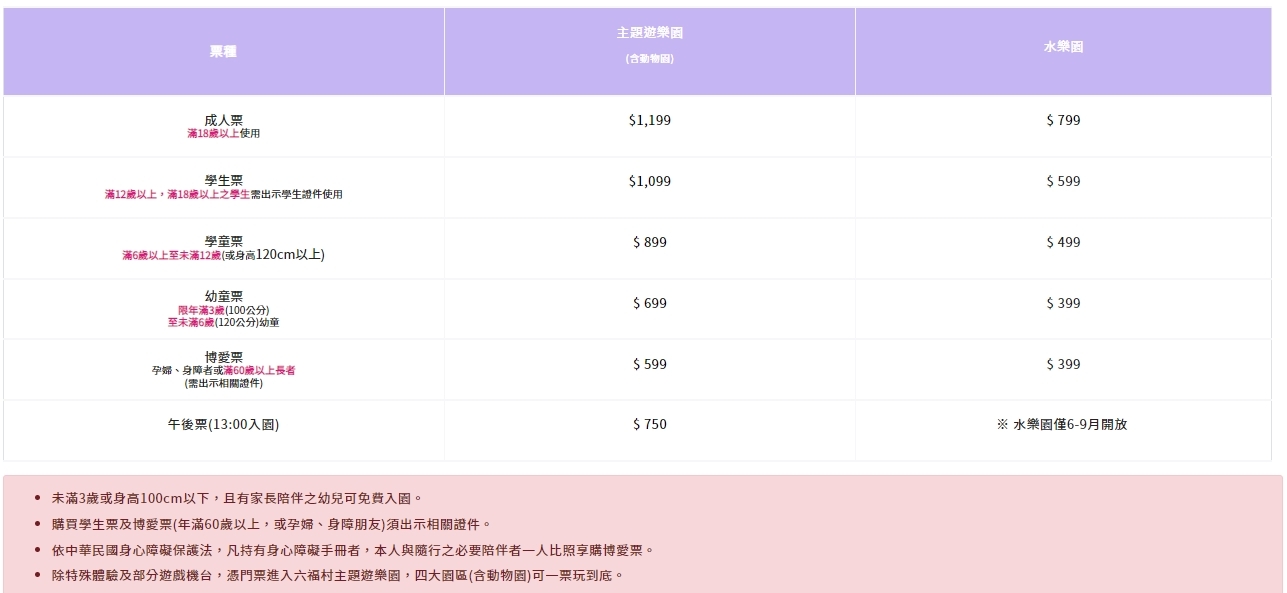 📍3歲/100cm~6歲/120cm兒童、孕婦、身障人士、60歲以上長者,請現場憑證購票