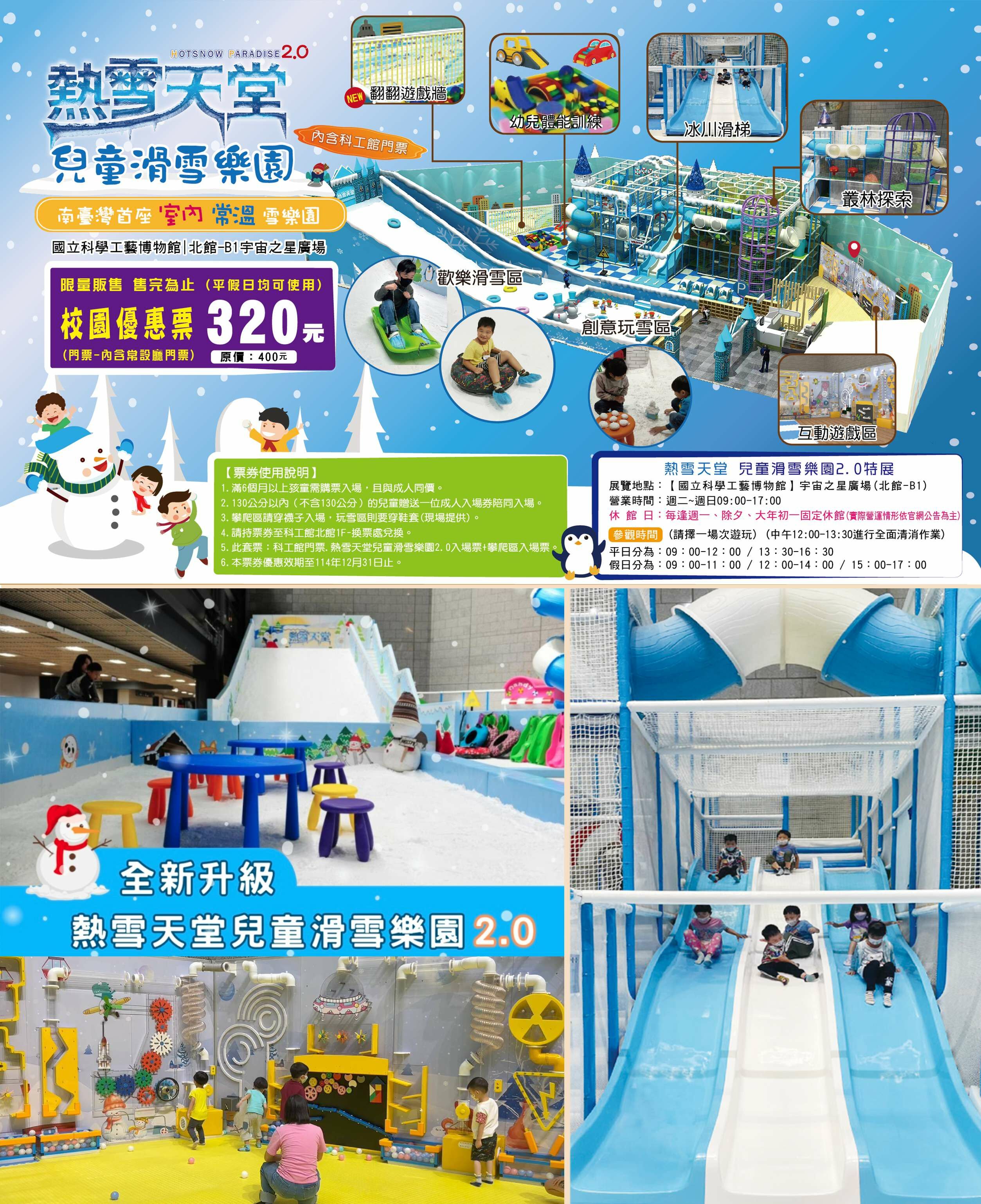 5.此套票:科工館門票(含常設廳).熱雪天堂兒童滑雪樂園2.0入場票+攀爬區
