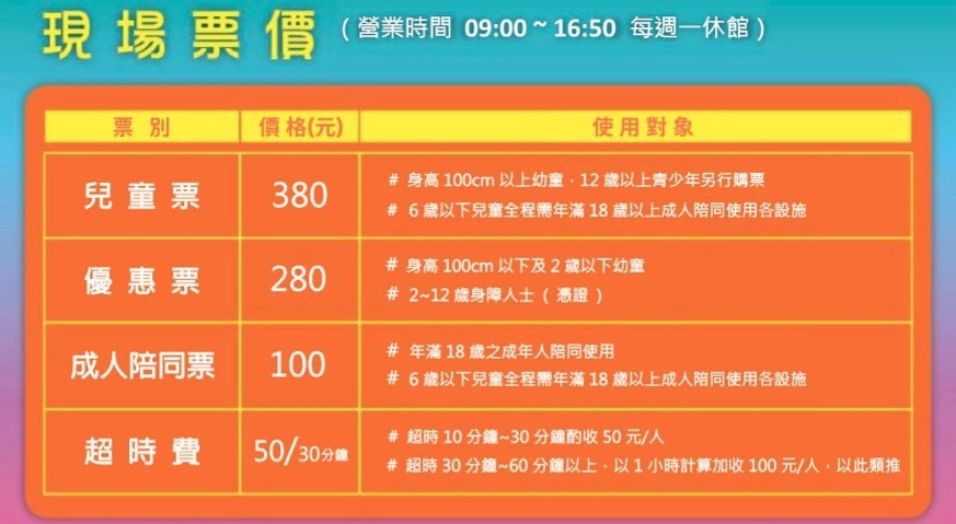 親子票 199元 (平日不限時) (國定例假日.寒暑假期間-限3小時)