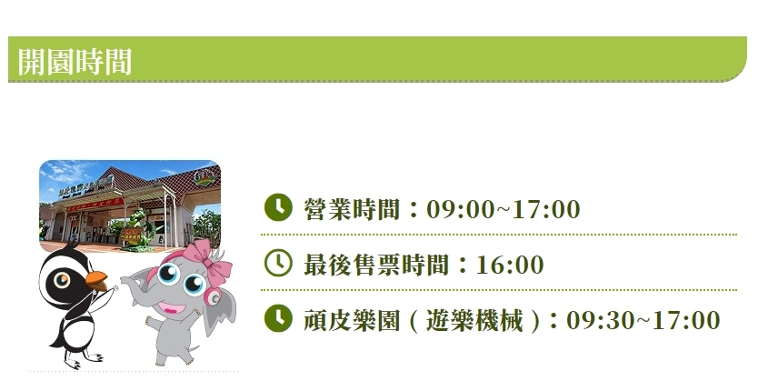 園區內擁有三百多種溫馴可愛的動物,包含大小朋友們都非常喜愛的長頸鹿、水豚、袋鼠、黑腳企鵝、耳廓狐以及金剛鸚鵡等,更有全台唯一的藪貓和科摩多龍。此外,園區另有六項大型機械遊樂設施、戶外攀爬遊戲區、與全新開幕的動物主題水樂園。一票玩到底,可以同時體驗動物園、遊樂園、水樂園,非常適合親子及年輕人一同前來遊玩!